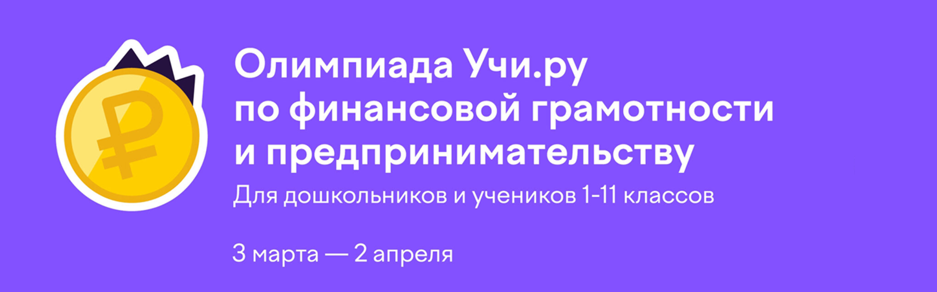С 3 марта по 2 апреля 2026 года образовательная онлайн-платформа «Учи.ру» (далее – платформа «Учи.ру») совместно с Минфином России, Банком России, Минэкономразвития России, Автономной некоммерческой организацией «Национальные приоритеты» при поддержке портала «Мои финансы» реализует некоммерческую просветительскую инициативу – Всероссийскую онлайн-олимпиаду по финансовой грамотности и предпринимательству для учеников 1–11 классов (далее – Олимпиада).