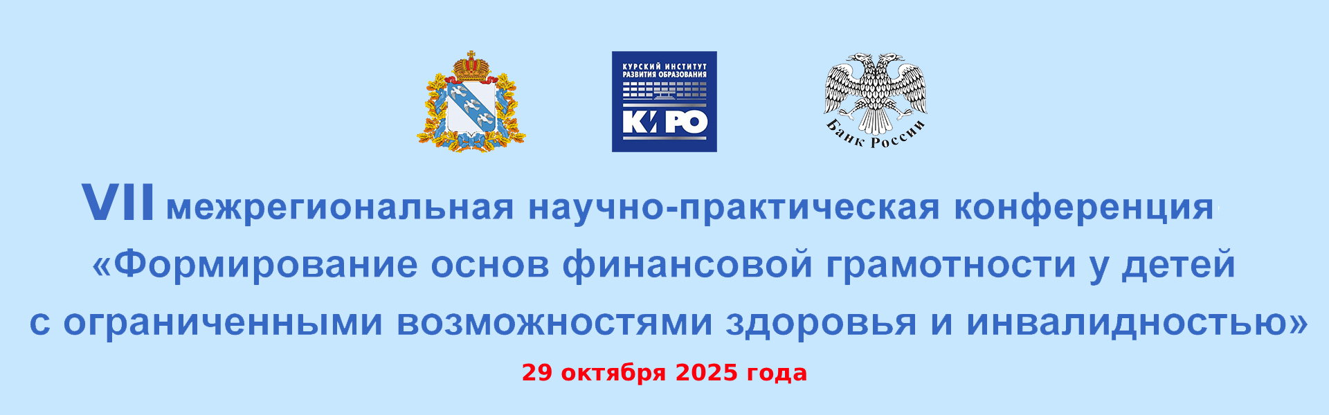 29 октября 2025 г. состоится Седьмая межрегиональная научно-практическая конференция «Формирование основ финансовой грамотности у детей с ограниченными возможностями здоровья и инвалидностью» в формате видео-конференцсвязи.